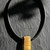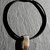 Collana con pietra in vetro infilata in un girocollo in cuoio nero.